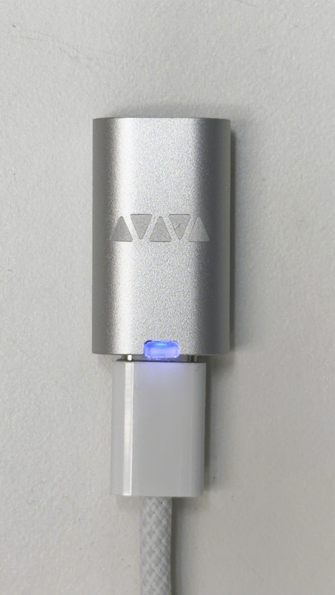 USBデータで通信を行っている場合、VFLEXのLEDは青に点灯します。設定を書き込むために端末(スマホやパソコン)にVFLEXを接続している際、この色が点灯します。